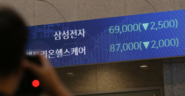 삼성전자 주가는 장중 6만8700원(-3.92%)까지 떨어지기도 했다. 종가 기준으로 7만원을 밑돈 건 지난해 12월3일 이후 10개월만이다.