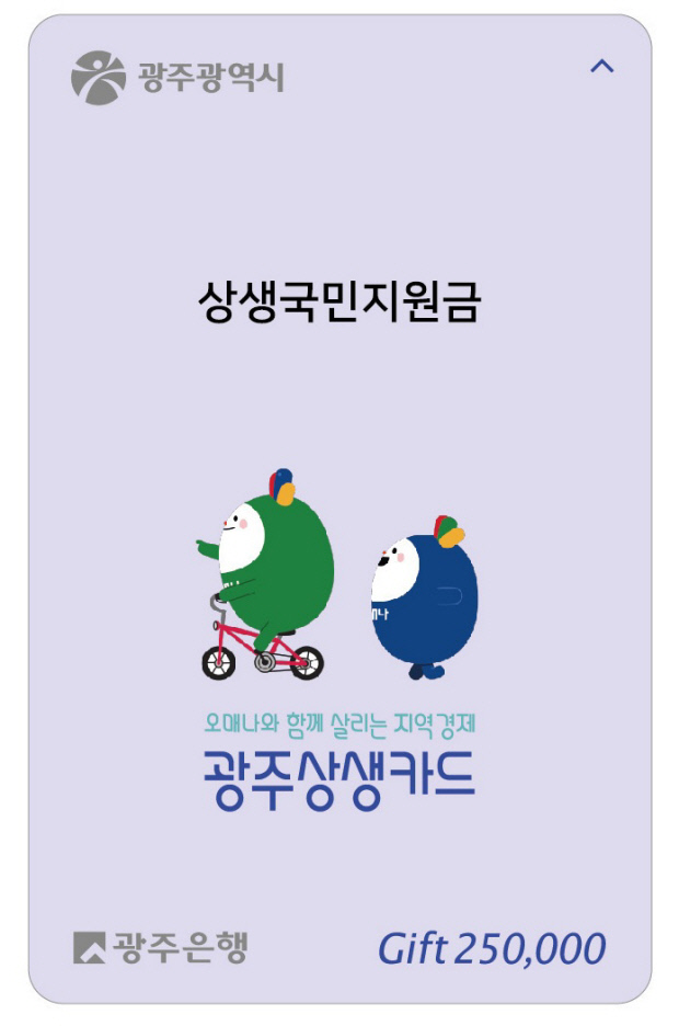 12일 광주은행에 따르면 광주은행 KJ카드(신용·체크) 포인트 충전방식과 지역사랑상품권인 ‘광주상생카드’(선불카드·사진)로 지급된 코로나 상생 국민지원금은 지난 5일 기준 29만8000명 분에 달하는 745억원으로 집계됐다.