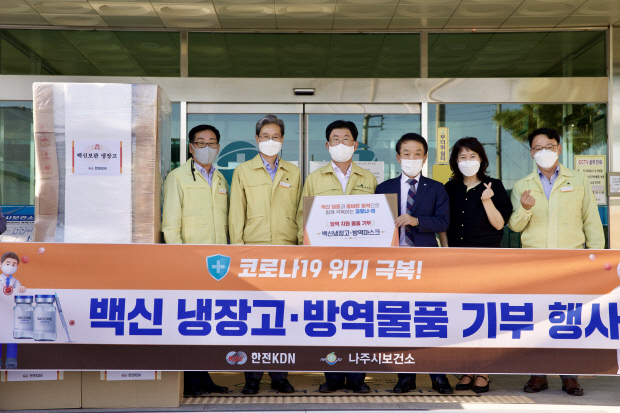 한전KDN은 지난 18일 나주시 보건소를 찾아 코로나19 예방백신을 보관하기 위한 냉장고를 전달했다고 19일 밝혔다.