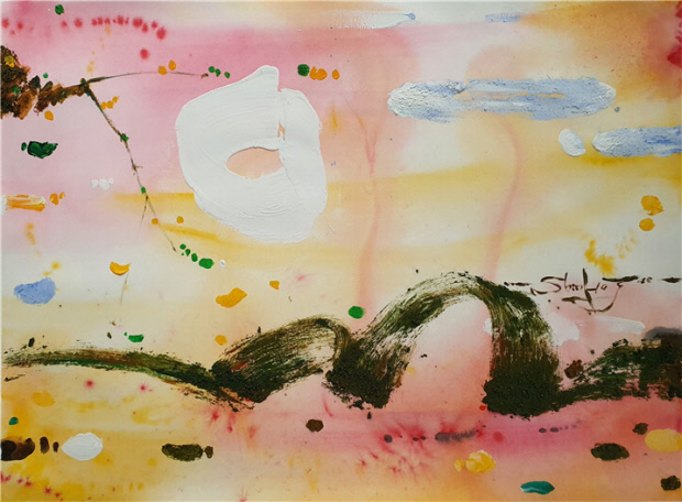 이번 전시에서 그는 자연을 그리고 있지만 단순한 재현 대신 달과 산, 강, 나무 등을 자신의 개성이 담긴 기호로 재해석해 독특한 화면을 만들어낸다. 비구상 느낌의 작품은 관람자만의 다채로운 해석이 가능해 흥미롭다.
