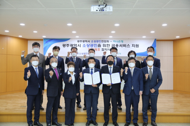광주시 소상공인연합회와 하나은행 호남영업그룹은 21일 광주시 동구 금남로 하나은행 호남영업그룹에서 ‘광주 소상공인을 위한 금융서비스 지원 업무 협약’을 맺고 소상공인 권익 향상에 힘쓰기로 했다.