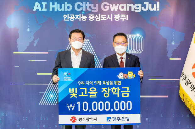 광주은행은 21일 광주시청에서 재단법인 빛고을장학재단에 인재육성 장학기금 1000만원을 전했다.