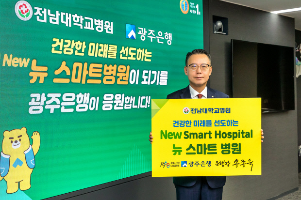 광주은행 송종욱 은행장은 25일 전남대학교병원의 스마트병원 건립을 응원하는 ‘새병원 희망 메시지 릴레이 캠페인’에 동참했다고 이날 밝혔다.