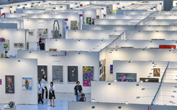 자체부스 기획전은 지역 원로작가를 소개하는 ‘명품작가전’, 인기작가 그룹의 ‘블루칩 작가전’, 비전 있는 청년작가 양성을 위한 ‘라이징 스타전’ 1가구 1작품 컬렉션을 지향하는 ‘마음의 선물전’과 ‘행복한 그림전’, 동시대를 앞서 나가는 작가의 대형 작품을 소개하는 ‘프로포즈존’ 등이다. 또 관람객들이 좀 더 편하게 작품을 구입할 수 있도록 균일가존(50만원~200만원)도 운영한다.