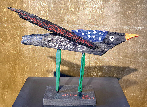 “매일 손에서 놓지 않고 작업하는 것은 작가의 생명력과 창작의 영감을 준비 상태로 놓는 중요한 것이었다”고 말하는 고 작가는 작업실에 있는 재료들과 유쾌한 장난을 주고받으며 작품을 뚝딱뚝딱 만들어냈다. 길게 자른 가느다란 나무로 만들어낸 ‘김과장’, 철판을 잘라 재미있게 구성한 ‘가을여행’ 등이 대표적이다.