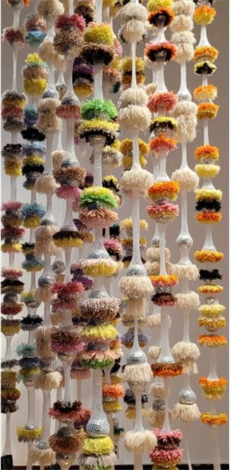 최선 작가의 ‘코로나 위장-움직이는 매개자(도큐멘트)’작품은 코로나 바이러스 촉수를 변형해 만든 이미지를 차에 장착하고 직접 관람객을 찾아 전국을 다니는 과정을 찍은 영상이며 10m에 이르는 대작 ‘나비’는 관람객들이 입으로 불어 만들어낸 결과물이다. 그밖에 최성임 작가는 비닐,양파망, 빵끈 등 우리 삶에 친숙한 소재를 통해 낯선 풍경을 연출한다.