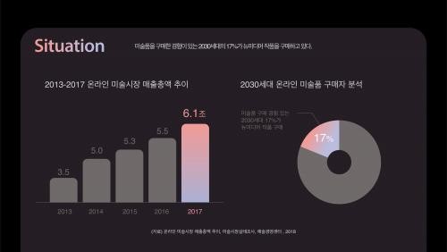 예술경영지원센터에 따르면 지난 2017년 기준 국내 온라인 미술시장 매출은 6조1000억원으로, 4년 전인 2013년(3조5000억원)의 2배 가까이 뛰었다. 조사 결과 미술품 구매 경험이 있는 2030세대의 17%는 뉴미디어 작품을 산 것으로 나타났다.