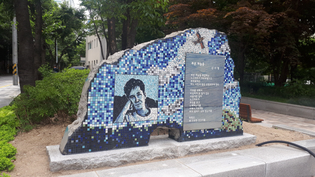 | 서울 김수영문학관 인근 정원에 있는 ‘푸른 하늘을’ 시비. |