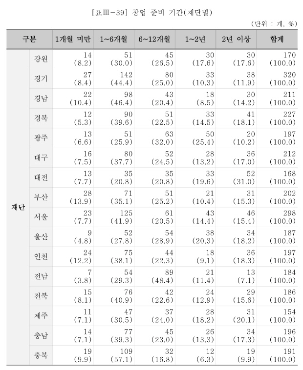 지역별로 보면 준비기간이 6개월 미만인 비중은 광주 32.5%·전남 33.1%로 나타났다.