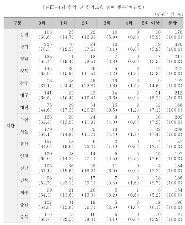 창업 전 창업교육을 ‘0회’ 받았다고 답한 비중은 광주 37.1%·전남 57.1%에 달했다.