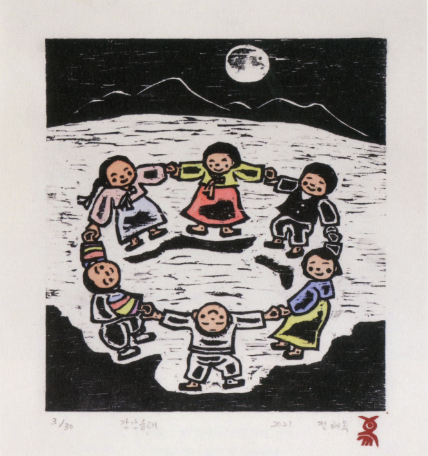 판화와 단상을 함께 엮은 작품집에는 서문을 쓴 이효복 시인의 말처럼 ‘이야기꾼’으로의 그녀의 모습도 만날 수 있다. 개인전 기간 중 전시장에서 작업을 이어간다. 전 작가는 ‘목판화 보따리전’, ‘13인의 엄마이야기’전, ‘오월정신 릴레이 아트’전 등에 참여했다.