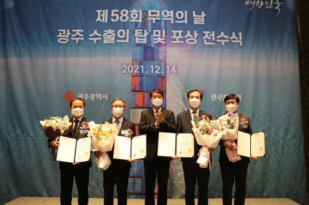 한국무역협회 광주전남지역본부와 광주시는 14일 제58회 무역의 날을 기념해 ‘광주 수출의 탑 및 유공자 포상 전수식’을 열고 지역 우수 수출기업에 대한 수출의탑 시상과 무역 유공자들에 대한 포상을 실시했다.