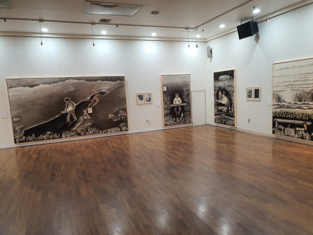 이번 전시는 지난 5월 27일 국립아시아문화전당에서 열렸던 ‘역사의 피뢰침, 윤상원-하성흡의 수묵으로 그린 열사의 일대기 ’전이 중심이 된 전국 순회 프로젝트다. 윤상원 생가 터가 있는 광산구는 뮤지컬 등 윤열사 헌창 사업을 지속적으로 진행해 왔으며 최근 2년 동안 윤 열사 일대기를 그림으로 남기는 기획을 추진해왔다.