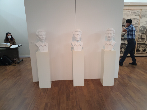 오는 23일까지 인천문화예술회관 대전시실에서 열리는 전시는 (사)인천민주화운동계승사업회가 함께 한다. 1전시실에서는 하성흡의 수묵으로 그린 윤상원 일대기전과 김광례 조각가가 작업한 윤상원 열사 흉상 조소 작품이 전시되며 2전시실에서는 성남훈 작가의 사진과 김상집의 ‘윤상원 평전’으로 만나는 5월 그날의 현장이 진행된다.