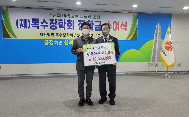 기아 오토랜드(AutoLand) 광주(공장장 박래석)는 지난 17일 광주시청 중회의실에서에서 ‘록수장학회 후원금 전달식’을 열고 소방공무원 자녀에 대한 장학금을 후원했다.