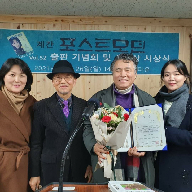 지난 26일 포스트모던문학회(회장 강행원) 주최로 열린 포스트모던 제52호 출판기념회 및 신인상 시상식에서 김 화백은 시부문 작가 인증서와 상장을 받았다. 그는 “시인이란 호칭을 듣게 돼 문인화가로서 조금은 위안이 된다”고 간략하게 소감을 밝혔다.