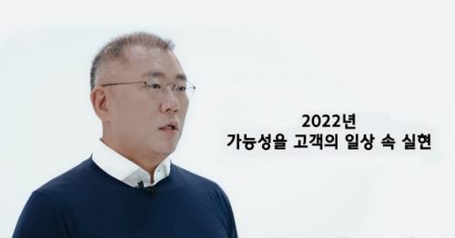 정의선 현대차그룹 회장은 3일 메타버스 플랫폼을 통한 그룹 신년회에서 상영된 영상 신년사를 통해 자율주행과 로보틱스, 도심항공모빌리티(UAM)를 비롯한 미래사업 분야의 성과를 가시화하겠다며 2022년 새해 의지를 밝혔다.