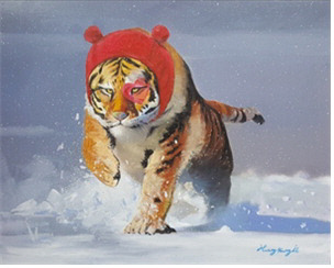 근엄한 자태를 뽐내고 있는 호랑이, 아기새를 머리에 이고 가는 귀여운 아기 호랑이, 샘통이 난 듯 뾰로통한 표정으로 눈길을 어슬렁거리는 호랑이, 애니메이션에 등장할 것 같은 깜찍한 호랑이….