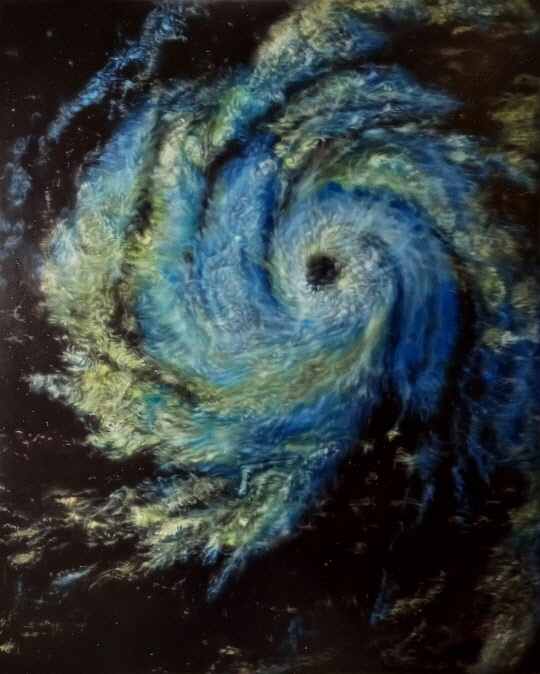 스스로를 ‘우주 안에 살고 있는 또 하나의 작은 우주’라고 말하는 작가는 “우주는 갈 수도, 손으로 만질 수도, 몸으로 느끼고 감지하지도, 직접 눈으로 볼 수도 없는 공간”이라며 “상징적인 형상과 색채들을 조합해 우연적인 효과를 담아내려 했다”고 설명한다.