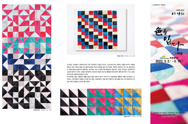 조각보 작업을 꾸준히 해온 이남희 작가 8번째 개인전이 오는 3월2일부터 15일까지 광주시 서구 치평동 LH주택공사 휴랑갤러리(광주시 서구 시청로 91)에서 열린다.