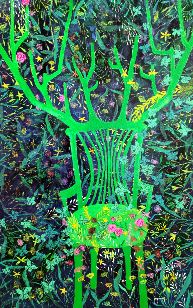 그림에 등장하는 숲속 풍경은 마치 꿈 속에서 본 듯하다. 작가는 유년 시절, 자연 속에서 느꼈던 편안함과 즐거운 추억들에서 길어올린 다채로운 풍경, 이야기들을 다양한 색감과 상징이 어우러진 작품으로 표현했다.