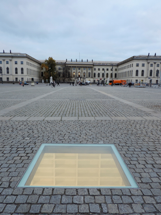 나치를 추종하는 대학생들은 1933년 5월 10일 밤 베벨 광장에서 2만 권이 넘는 책들을 불태웠다. 현재 베벨 광장 지상에는 사각형 투명 유리창만이 있고, 그곳을 통해 내려다 보이는 지하 공간엔 텅 빈 책장이 존재한다. 미하 울만이 1995년 완성한 기념조형물 ‘도서관’은 ‘비워둠’을 택해 더 많은 감동을 주는 작품이다. 또 톰 크루즈 주연의 영화 ‘작전명 발키리’의 소재가 되기도 했던, 히틀러 암살을 주도했던 이들의 흔적을 만나는 ‘독일저항기념관’의 조형물도 인상적이다.