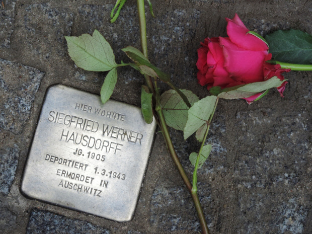사진 속, 붉은 장미꽃 한송이와 함께 찍힌 동판은 무엇일까. 거리 바닥에 놓인 동판에 독일어로 적힌 글귀는 ‘지크프리트 베르너 하우스도르프가/이곳에 살았음 1905년생/1943년 1월 추방됨/아우슈비츠에서 학살당함’이다.독일 베를린 거리 곳곳에서 만나는 작은 동판은 나치가 추방하거나 살해한 이들을 추모하기 위해 설지한 추모석이다.