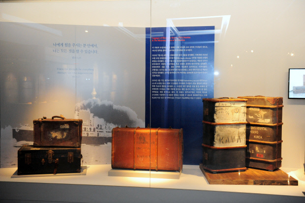 1부 ‘복음의 기쁨’에서는 역사적인 맥락에서 본 ‘쿰란 토기’와 18세기 ‘그레고리오 성가집’, ‘로마 주화’ 등을 볼 수 있다. 특히 1950년대 한국에 진출했을 당시 성 골롬반 외방선교회와 수녀회 소속 사제와 수도자들이 사용한 가방이 눈에 띈다. 당시 수녀들의 가방에는 본인의 물건이 아닌 의약품들이 가득 담겨 있었다. 6·25 직후 열악한 환경에서 주민들을 돕기 위한 차원이었는데, 가방은 당시 수녀들의 거룩한 봉사와 희생 정신을 상징한다.