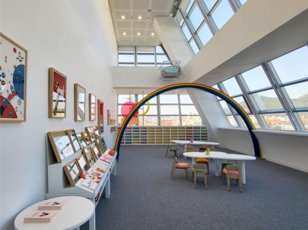 공간은 구름, 무지개, 해, 달, 별 등 동심에 어울리는 실내장식과 아치형 천장 구조물을 활용해 설계했다.