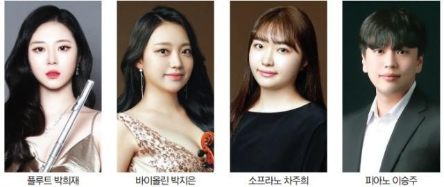 또 피아니스트 이승주(국립목포대)의 브람스 ‘파가니니 주제에 의한 랩소디 Op.35’, 플루티스트 박희제(조선대)의 차이코프스키 ‘플루트와 피아노를 위한 소나타 C장조 ’, 피아니스트 하혜수(광신대)의 쇼팽 ‘발라드 1번’, 소프라노 김가현(조선대)의 윤이상 ‘고풍의상’, 푸치니 오페라 ‘쟌니 스키키’ 중 ‘사랑하는 아버지’도 만날 수 있다.