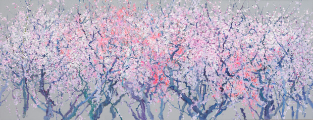 ‘매화 향기’, ‘매화-담다’ 등 그가 그려낸 매화 작품들은 작가가 자신만의 기법으로 묘사해 눈길을 끈다. 세세한 묘사 대신 점들이 모여 이루어진 장면들은 색다른 느낌을 전달한다.
