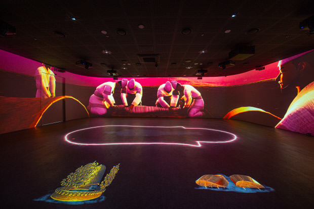 | 실감영상실에서는 영산강유역에 터를 잡고 살아온 선조들의 빛나는 삶을 미디어아트로 만날 수 있다. <국립나주박물관 제공> |