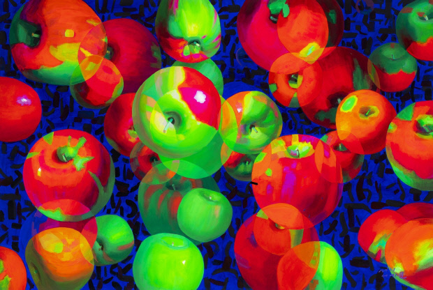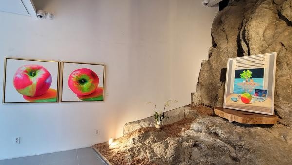 ‘메타버스’ 시리즈 속 ‘사과’는 따스한 햇살을 받은 수채화 작품에서는 전혀 다른 느낌으로 다가온다. 작가는 “사과가 주는 구도와 색의 미묘한 변화는 놀랍고 어떤 과일보다 조형성이 뛰어나 자주 작업하게 된다”고 말한다.