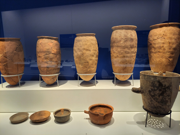 1부 주제는 ‘넓은 바다와 함께 생동하다’. 신석기시대 조개무지에서 발견된 유물을 볼 수 있다. 오래 전 사람들의 삶의 흔적을 담고 있는 도구와 토기는 조악한 것에서부터 정밀한 것에 이르기까지 다양하다. 조개로 만든 팔찌를 비롯해 동물 이빨로 만든 꾸미개, 채색무늬토기 조각, 점무늬토기 조각 등도 전시돼 있다.