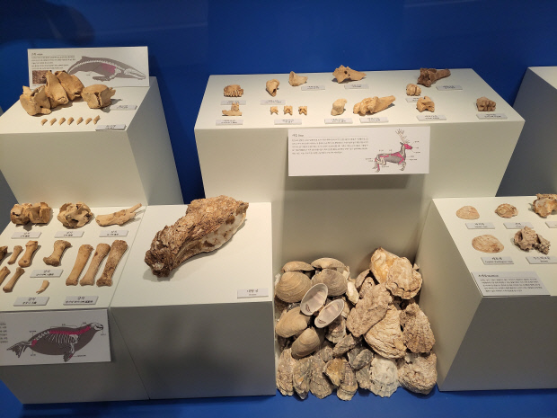 | 조개무지에서 발굴된 다양한 어패류껍질들. |