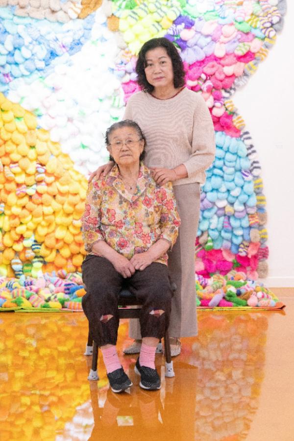 식당을 운영하던 86세의 엄마가 지난해 갑자기 쓰려졌다. 생활력 강하고, 활달한 분이셨기에 병상에 누워 쇠약해져만 가는 엄마의 모습에 딸은 마음이 아팠다. 시간이 날 때면 직접 손으로 뜬 수세미를 사람들과 나누곤 했던 엄마 모습이 떠올랐다. 하루 종일 기력이 없는 엄마에게 화가인 딸은 뜨개질을 권했다. 그가 색실을 사다주면 엄마는 이런 저런 색을 섞고 문양을 넣어 알록달록한 수세미를 떴다. 엄마가 뜬 수세미는 여기 저기 나눠줘도 쌓여갔고, 엄마와 2인전을 열고 싶다는 생각을 했다.