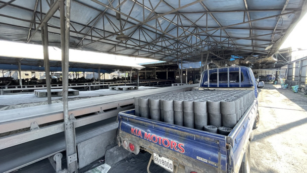 | 남선연탄 공장에서 만든 연탄이 9일 배달에 앞서 차량에 실려 있다. |