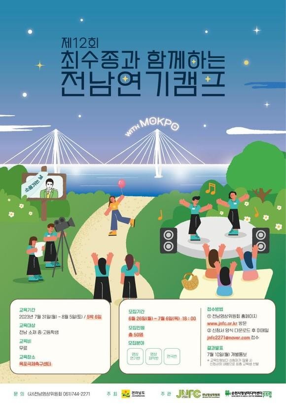 26일 전남도에 따르면 전남영상위원회는 오는 31일부터 다음달 5일까지 목포국제축구센터에서 5박 6일 일정으로 ‘최수종과 함께하는 전남연기캠프’를 진행한다. 사전 홍보 및 모집 과정을 거쳐 전남지역 청소년(중학생 23명··고교생 27명) 50명이 영상연기·연극·영상제작반으로 나뉘어 직접 영상기획, 시나리오·콘티 작성, 촬영·음향 실습, 연기·연극 실습 등 다양한 프로그램에 참여한다. 캠프 마지막 저녁에는 학생들이 다양한 끼를 선보이면서 직접 만든 작품 발표회도 열린다.