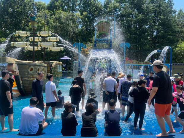 주간보호센터에서 온 이들 중에는 성인 발달장애인들도 있었다. 이들은 놀이기구에 설치된 물 바가지에서 떨어지는 물을 기다렸다가 맞으며 즐거워했다.