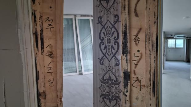 자신이 첫 분양 받아 거주해 왔고 처음 시공된 상태의 문틀 내부에 글귀가 적혀 있었다는 점에서다.