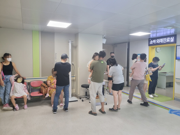 야간 소아환자가 많아 진료소 내 의자 뿐만 응급환자 대기실까지 부모와 아이들이 가득 차 소아환자대기실로 이용됐다.