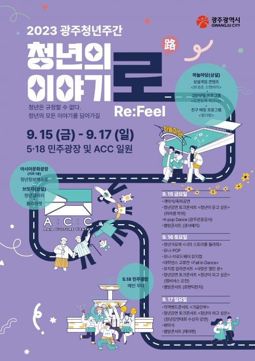 광주시는 “15일부터 17일까지 5·18민주광장과 국립아시아문화전당(ACC) 일원에서 ‘2023 광주청년주간’ 행사를 진행한다”고 12일 밝혔다.