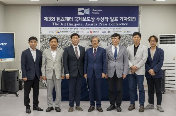 5·18기념재단과 한국영상기자협회는 13일 광주 서구 5·18기념문화센터에서 기자회견을 열고 제3회 힌츠페터 국제보도상 수상작을 발표했다. /김진수 기자 jeans@kwangju.co.kr