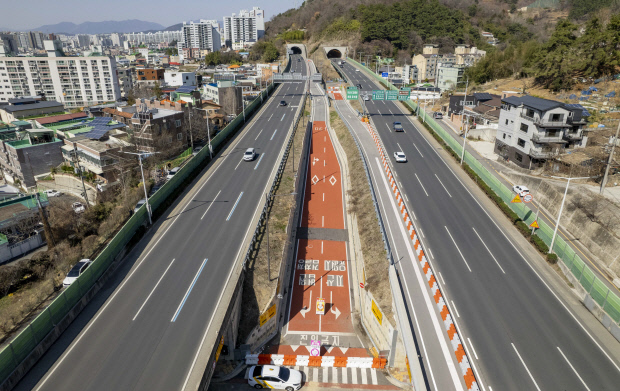 터널과 거리를 더 확보해 맨 우측에 우회 진출로를 새로 만들고, 좌측은 진출로로 활용하지 않고 도로를 높여 차량 진행 차로로 사용할 방침이다. 하행 진출로를 우측에 개설해 조선대 사범대 진입도로에 연결하는 데는 입체 교차하는 도로를 연결하는 경사진 부분(램프 구간) 옹벽 시공과 도로포장 등에 49억원 안팎이 들어갈 것으로 보인다. 개통 예상시기는 2025년이다.