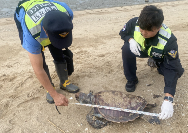 거북이는 몸 길이 73cm, 무게 약 15kg으로 측정됐다. 목포해경은 해당 사체를 무안군청에 인계했다. 사체는 부패가 심해 폐기처분할 계획이다.