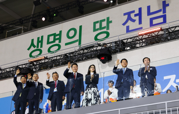 윤 대통령은 이날 개회식에 앞서 윤 대통령과 이주호 부총리 겸 교육부 장관, 이기흥 대한체육회장 등 정부 및 체육회 관계자, 김영록 도지사 등 각 시·도지사, 시·도교육감 등과 만찬을 하고 지역 현안을 논의했다.