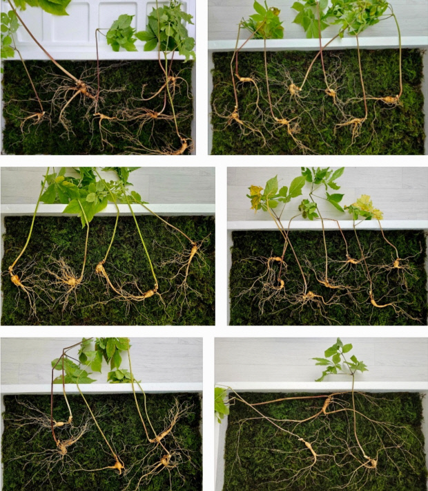 야생삼은 모삼(어미산삼) 뿌리가 90㎝ 길이에 이르고 2대와 3대를 이은 총 38뿌리다. 총 무게는 438g, 산삼뿌리의 무게는 185g이다.