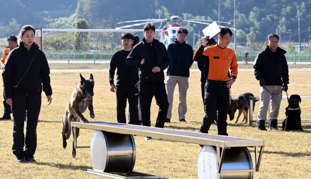 한편 이번 훈련은 이론교육, 실습으로 나뉘어 1박 2일간 진행된다. 훈련 2일차인 24일에는 화순군 춘양면 춘곡무인교육원에서 지진이 일어나 구조물이 무너지고 일부 침수된 폐교 환경을 조성해 실제 현장에 투입됐을 때 특수견의 역할에 대한 훈련을 진행한다.