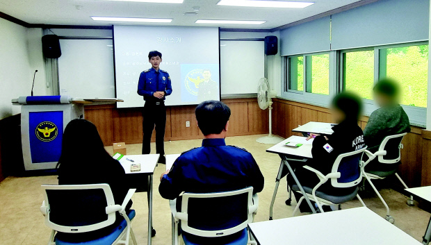 학생들은 강의에 앞서 지난 8~9월 전국적으로 논란이 됐던 SNS상 ‘살인예고’ 범죄자가 검거되는 장면이 화면에 비춰지자 긴장하는 표정을 지었다. 화면 속 범죄자가 온라인에 장난으로 올린 게시글만으로 수갑을 찼기 때문이다.