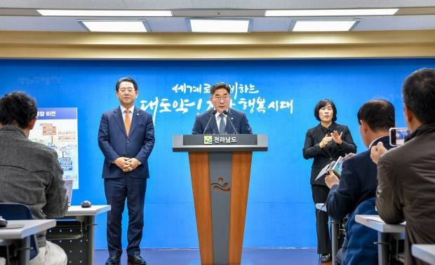 김영록 전남지사는 이날 도청 브리핑실에서 기자회견을 열고 “순천대가 지역을 넘어 대한민국의 새로운 성장동력이 될 수 있도록 지역사회와 힘껏 노력하겠다”면서 “지역산업과 연계한 대학 비전을 완성하는 데 전폭적으로 지원할 것”이라고 강조했다. 김 지사는 “전남도와 시·군, 산업계, 도 출연기관 등이 순천대와 협업체계를 구축하고 지역 사회의 목소리를 반영해 그린스마트팜, 애니메이션·문화콘텐츠, 우주항공·첨단소재 등 3대 분야 지산학 클러스터를 조성해 나가겠다”고 다짐했다.
